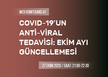 27 Ekim 2020 Salı günü, 21.00-22.30 saatleri arasında “COVID-19’un Anti-viral Tedavisi: Ekim Ayı Güncellemesi” konulu web konferans yapılacaktır.